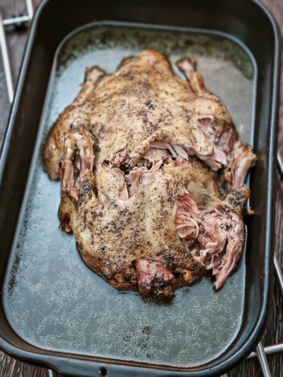Rețeta de la care m-am inspirat o găsești în variantă video aici. Fac precizarea că în cazul ăsta inspirația e majoră, eu doar am adăugat câteva mirodenii, am pus vin și am schimbat vasul pentru cuptor. Și ar mai fi ceva. Am testat trei rațe, diferite toate, până am tras o concluzie, pentru că de fiecare dată am învățat câte ceva. Prin urmare, zic să ții cont și de sugestiile mele de mai jos, s-ar putea să te ajute.