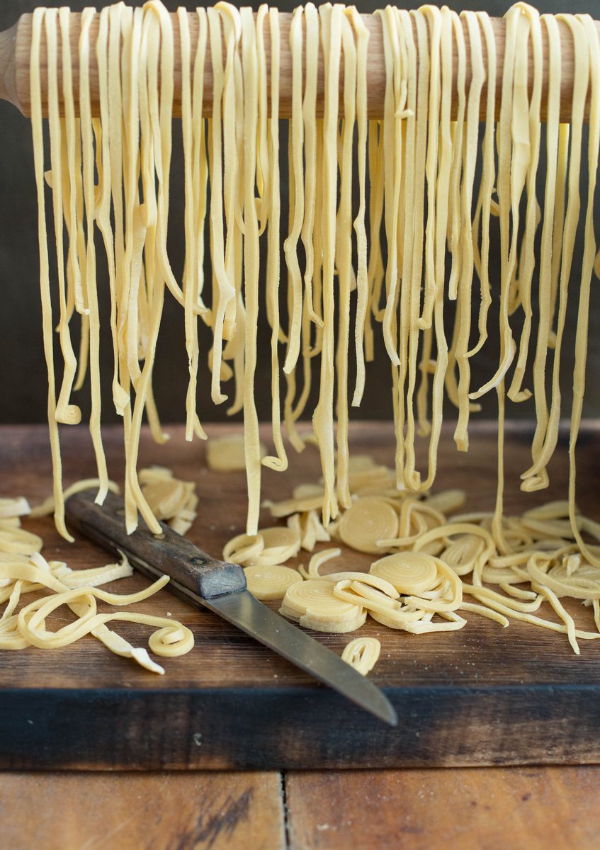 Se bate oul bine într-un bol și se amestecă la fel de bine cu făina și sarea. Se răstoarnă totul pe masă și se frământă vreo 2-3 minute cu simț de răspundere. Trebuie să iasă un aluat destul de tare. Nu cât să jucați 9 pietre cu el, dar suficient de ferm. E bine ca acum să stea vreo 20 de minute învelit. Pe masă apoi se presară făină, cât luați zdravăn între degete, iar aluatul se dă la întins, cu sucitorul, de preferat, până iese o foaie subțire. Se rulează și se taie în fâșii după grosimea dorită. Repet ce ziceam mai sus, ei se vor umfla la fiert, să țineți cont de asta.